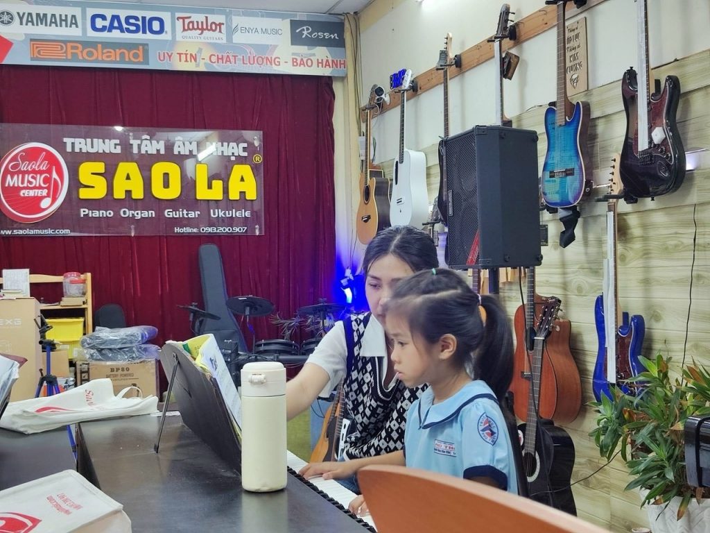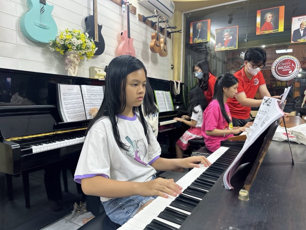 Hình ảnh học viên tham gia khóa học Piano tại Trung tâm âm nhạc Sao La